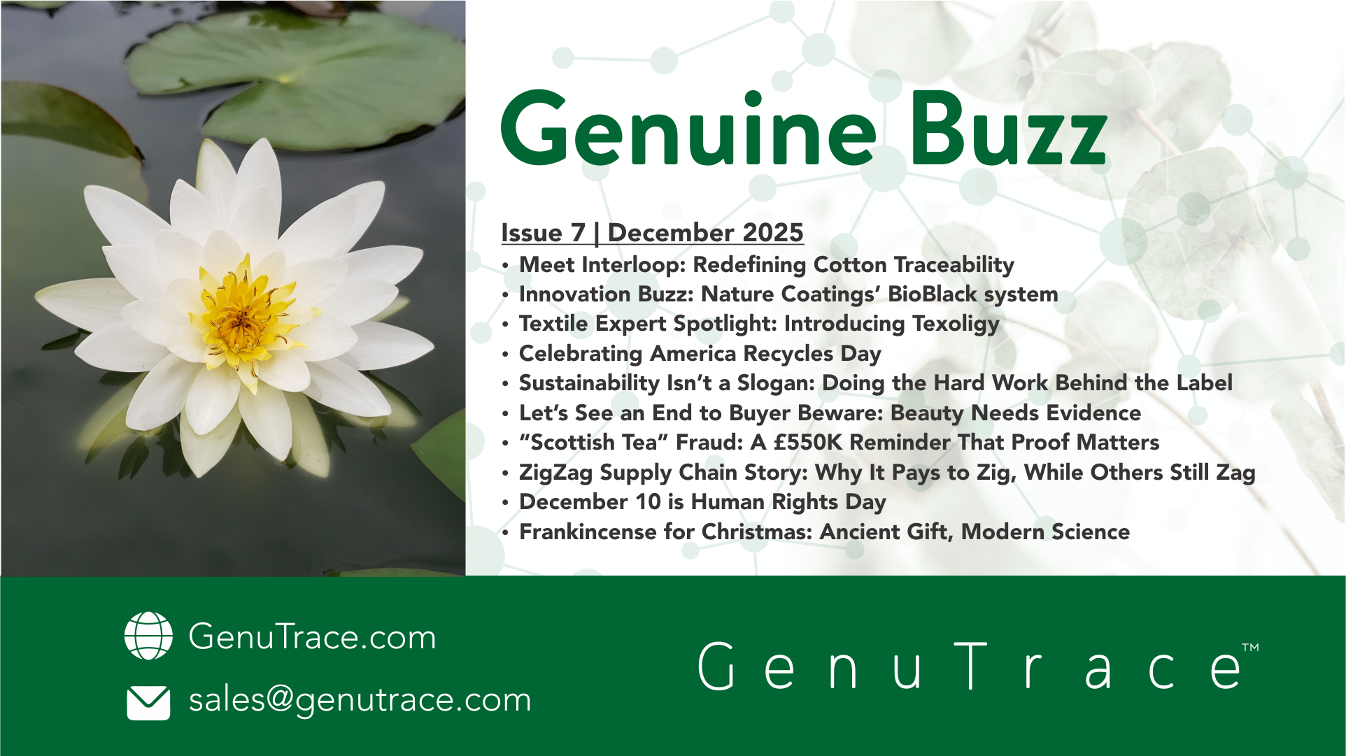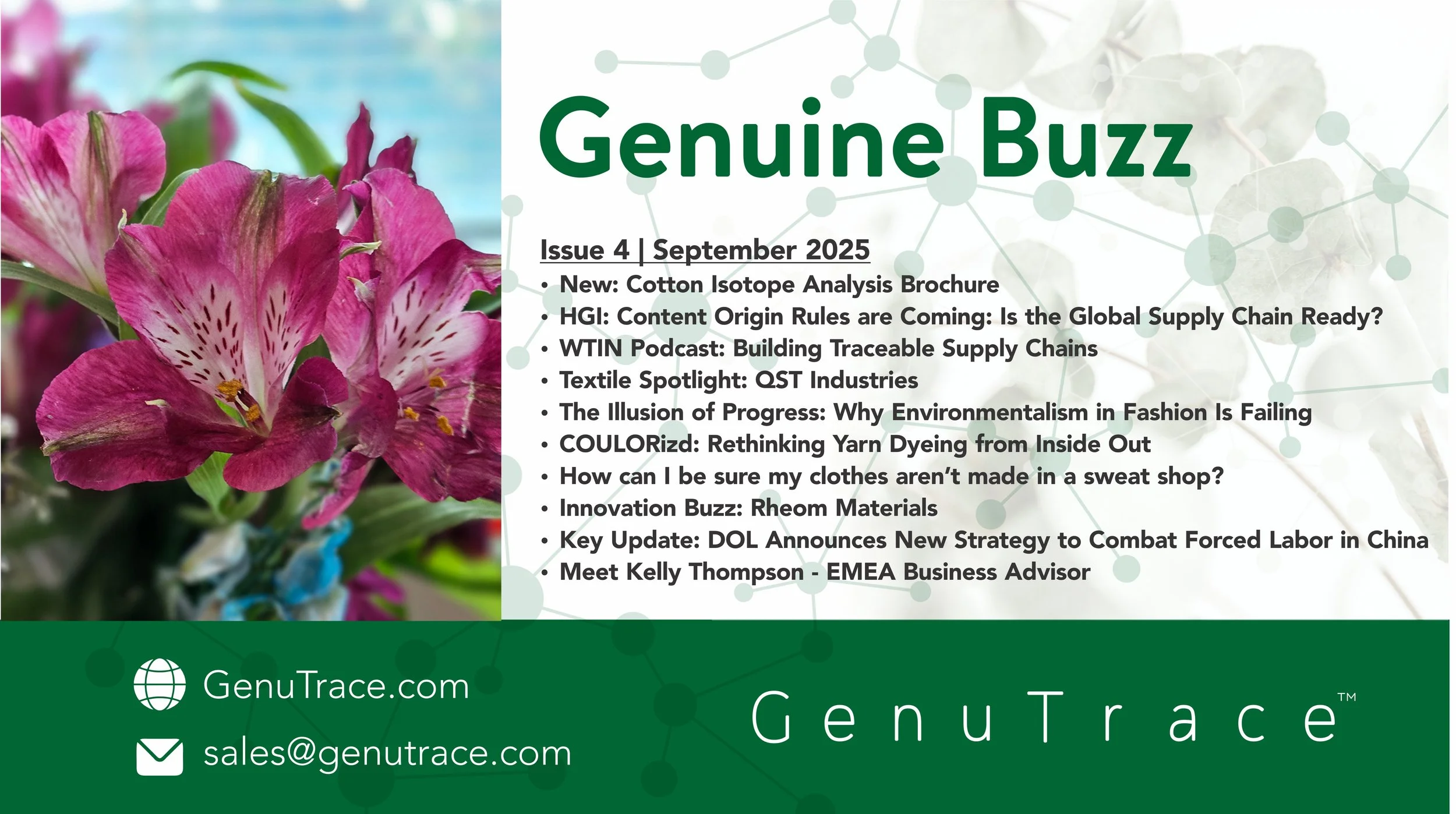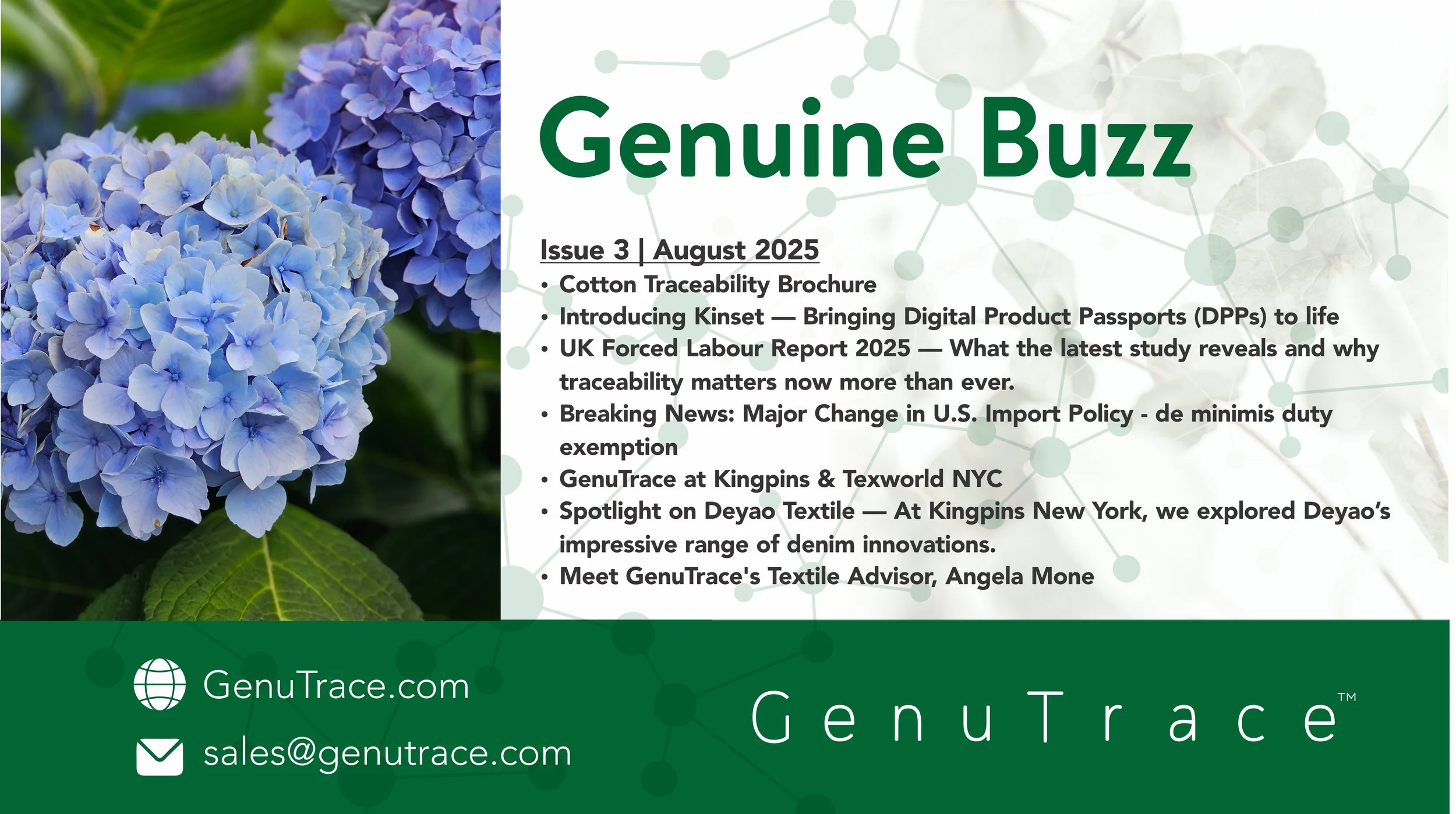 Stay informed with the Genuine Buzz Newsletter—featuring expert insights on supply chain traceability, origin verification, and the latest updates on UFLPA, EUDR, and sustainability regulations. Get industry news, compliance tips, and real-world strategies delivered to your inbox.
