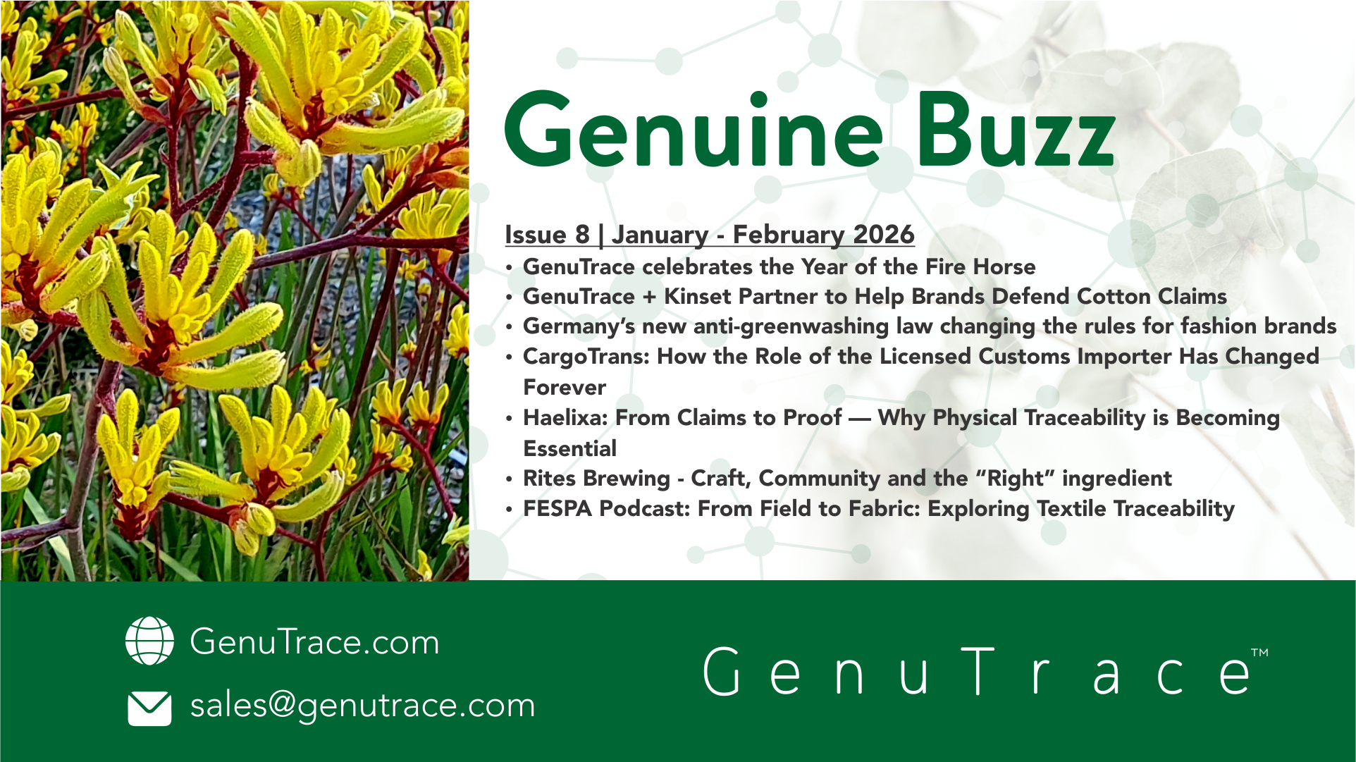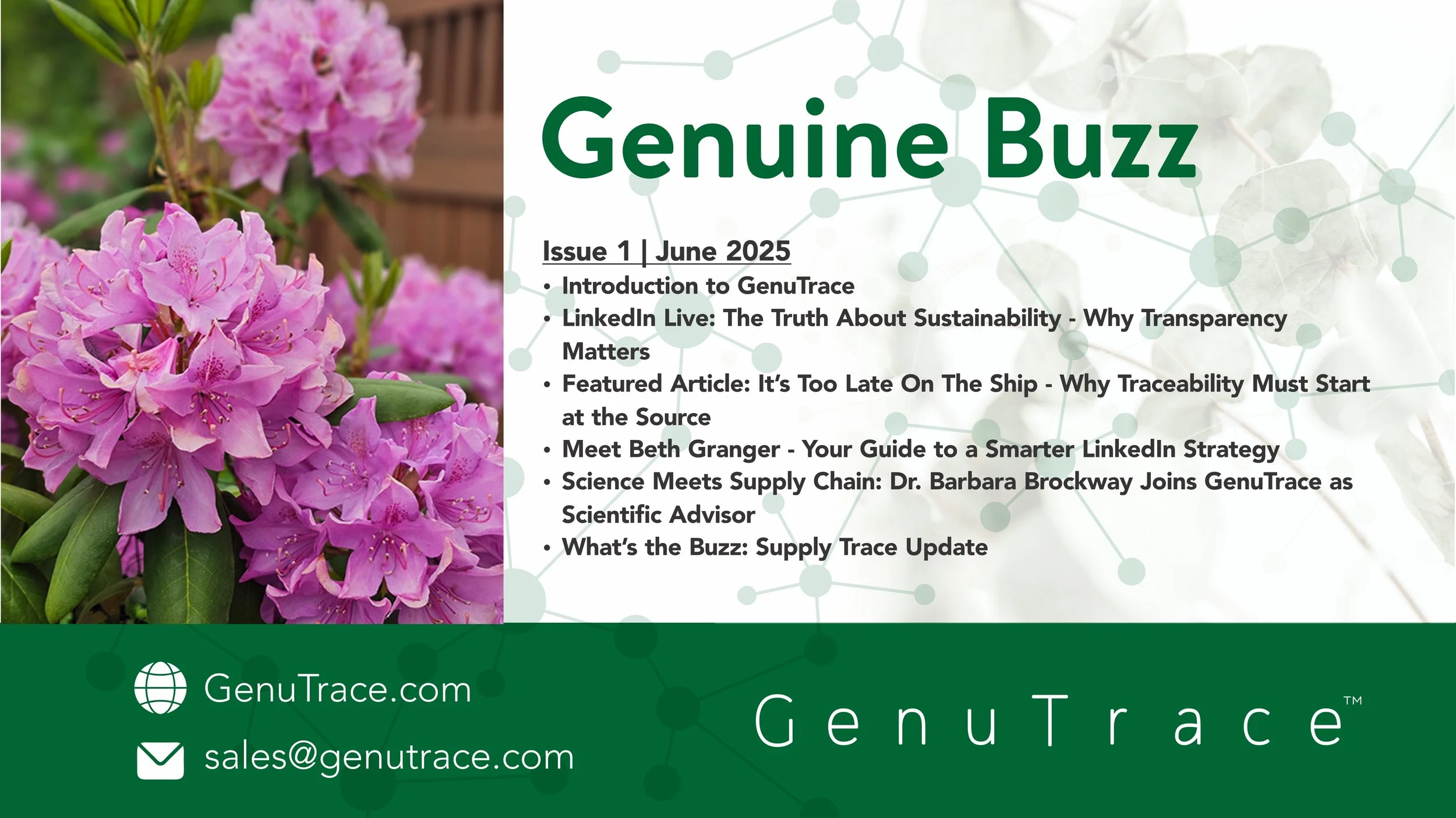 We're thrilled to announce the arrival of the GenuTrace Monthly Newsletter, your exclusive gateway to the cutting edge of supply chain transparency, innovation, and collaboration.